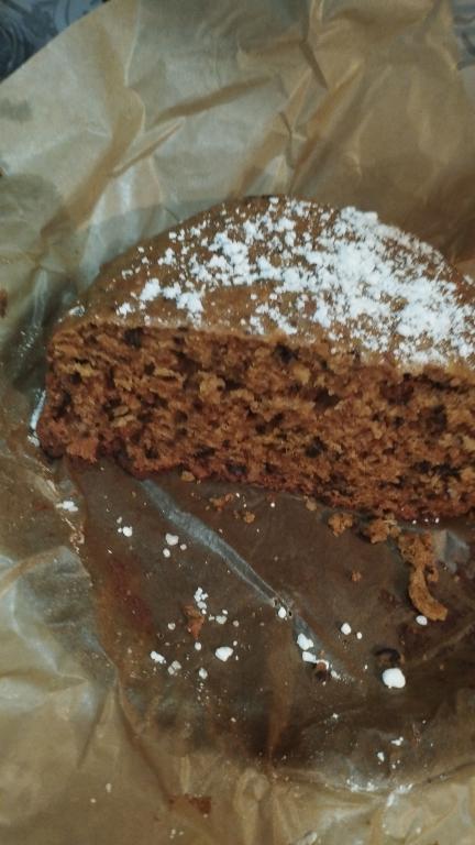 Украсить кекс по своему вкусу. Я растопила белый шоколад и им полила кекс. Можно просто посыпать сахарной пудрой.
