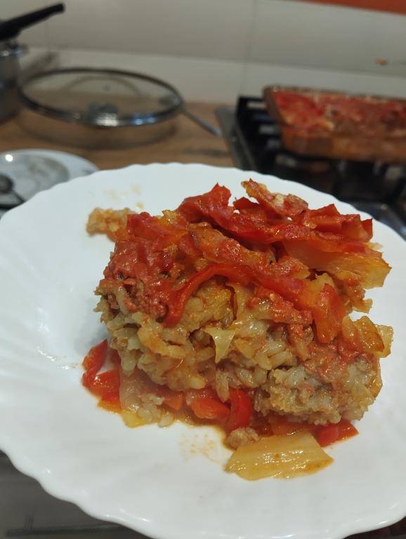 Голубцы - вкуснейшее блюдо, которое любят практически все. Предлагаю вам попробовать ленивые голубцы, приготовленные слоями в духовке. Вкус блюда ничем не хуже привычных голубцов, разница только в том, что готовятся голубцы по этому рецепту намного проще и имеют вид запеканки. Подать их можно на обед или ужин, обязательно со сметаной. Ни в каких дополнениях эти голубцы не нуждаются, блюдо - сытное и самодостаточное. Рекомендую, очень вкусно!