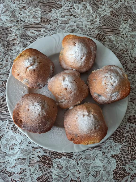 Перед подачей можно маффины просто присыпать сверху сахарной пудрой или украсить кремом, джемом, шоколадной стружкой и так далее. В этот раз я из крема на основе сливок отсадила маленькие звёздочки.