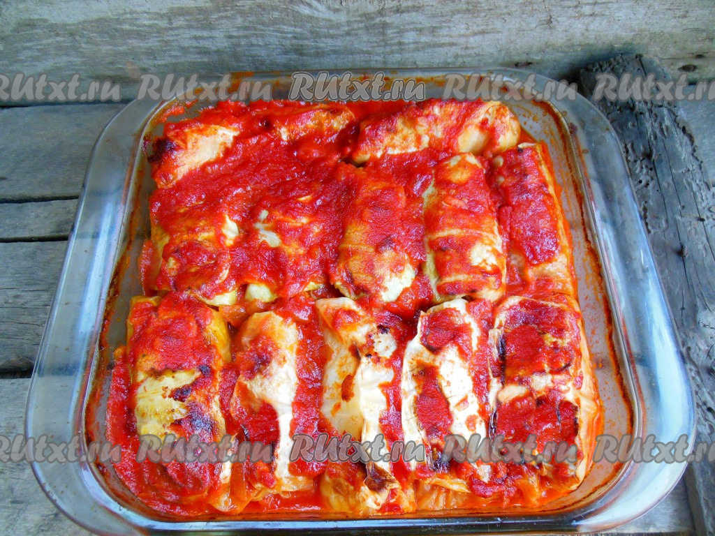 Сегодня хочу поделиться своим фирменным блюдом. Голубцы с начинкой из фарша и риса, запечённые в томатно-сметанном соусе в духовке, очень любят не только в моей семье, но их с нетерпением ждут и гости, приходя в наш дом. Поэтому я часто готовлю это блюдо. Предлагаю и вам попробовать, очень вкусно, особенно на второй день, когда голубцы как следует пропитаются.