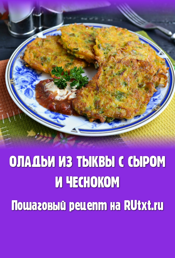 Очень вкусные оладьи, приготовленные из тыквы с добавлением сыра и чеснока, подать в горячем виде, дополнив любым соусом или сметаной. Мне очень нравится подавать такие оладушки с острым кетчупом, смешанным со сметаной.