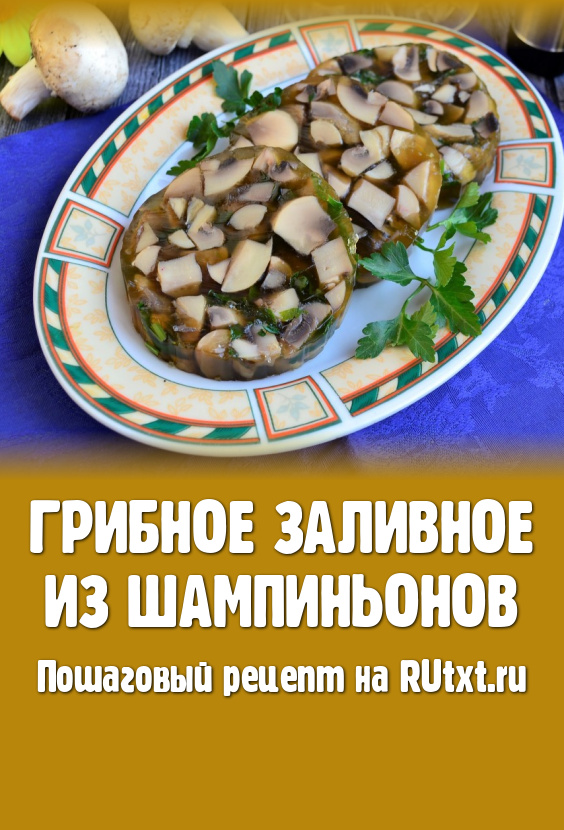Предлагаю вам замечательную закуску для праздничного стола - грибное заливное из шампиньонов. Блюдо получается очень вкусным, ярким и красивым, особенно если приготовить его в виде тубы. Для этого нужно разлить готовый тёплый бульон с грибами в пластиковую бутылку и дать ему застыть, после чего нарезать. Приготовьте обязательно эту закуску, она точно понравится вашим близким и гостям. Бульон можно использовать от любых отварных грибов или растворить в воде бульонный кубик с грибным вкусом.