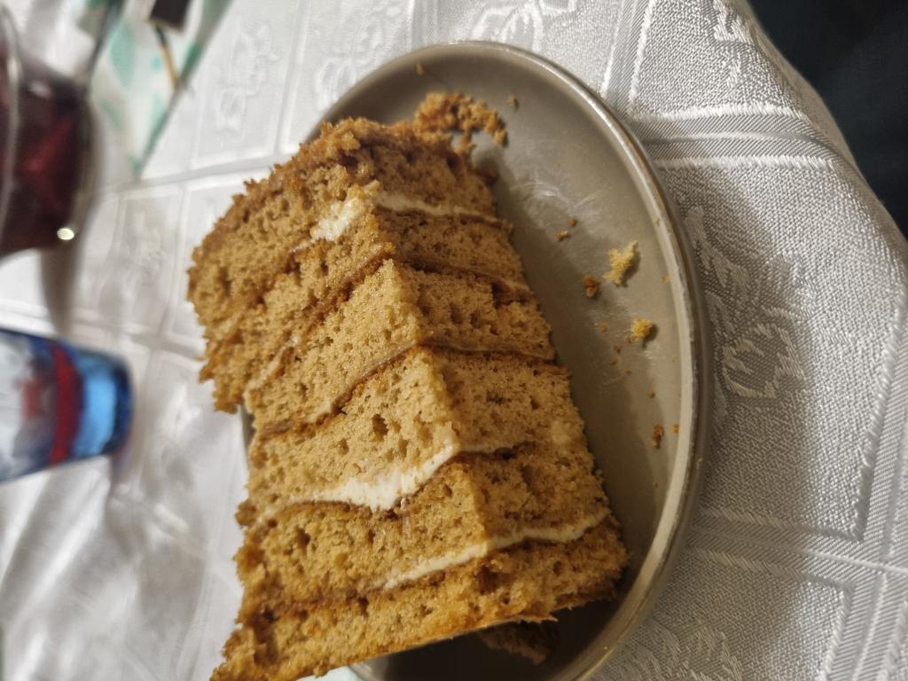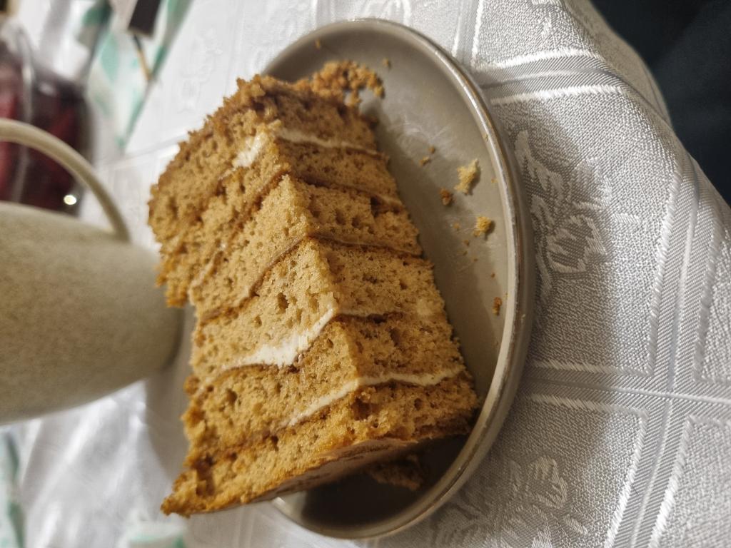 Посмотрите, какой красивый разрез у нашего ленивого медовика, который, кстати, готовится достаточно просто, без раскатки коржей.