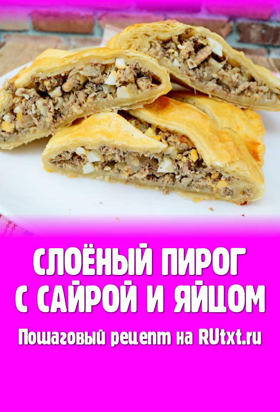 Выпекать пирог с сайрой и яйцом в духовке, разогретой до 200 градусов, минут 25-30 (до красивого подрумянивания слоёного теста).
