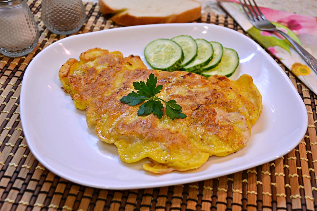 Очень нежные и вкусные отбивные из куриного филе, приготовленные в кляре на сковороде, подать в горячем виде к столу.