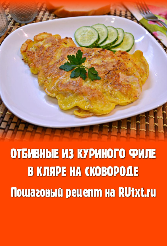 Отбивные из куриного филе, жареные в кляре на сковороде, - простое в приготовлении, но очень популярное и вкусное блюдо, которое можно предложить своим родным на завтрак или ужин. К куриной отбивной лучше всего подать свежие овощи, а, по желанию, любой гарнир. Отбивные получаются сочными, нежными и необычайно вкусными!