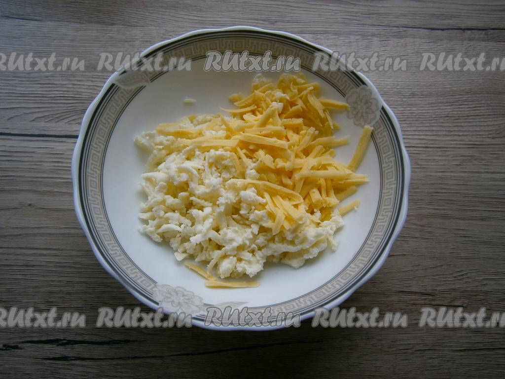 Сыр натереть на крупной терке (рассольный сыр можно просто раскрошить).