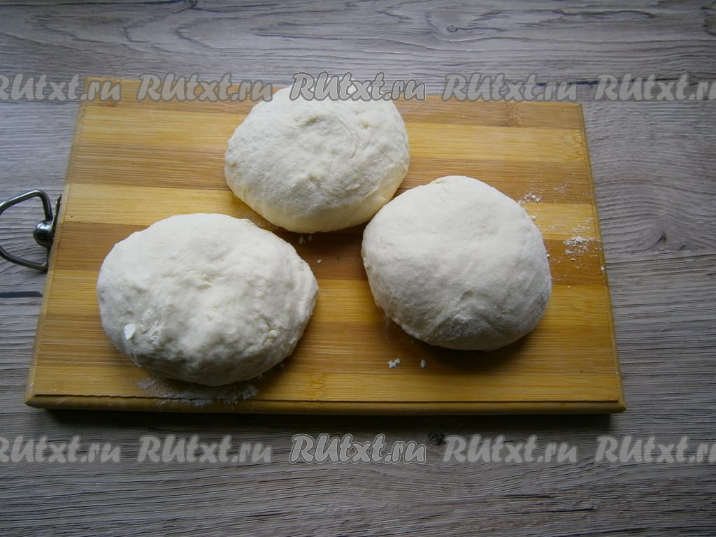 Тесто обмять, разделить его на 3 части. Каждую часть теста скатать в шар.