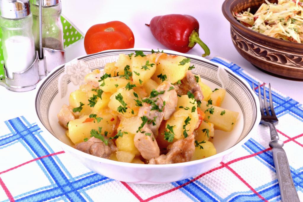 Картофель, тушеный с курицей в мультиварке, получается необычайно вкусным. Это совершенно простое домашнее блюдо можно предложить своим близким на обед или ужин со свежим салатом или соленьями. Я использовала мясо курицы, обрезанное с ножек и бедрышек, можете взять куриное филе.