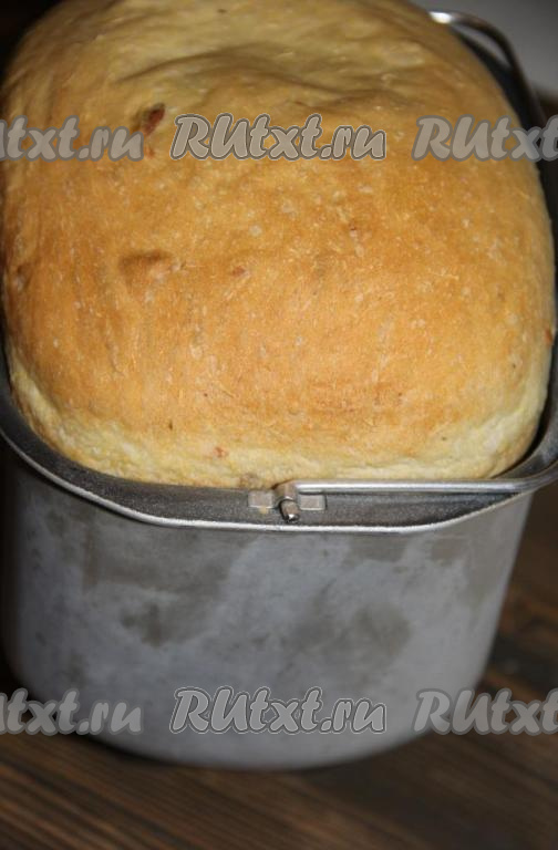 Готовый тыквенный хлеб слегка остудить, а затем достать из ведёрка хлебопечки.