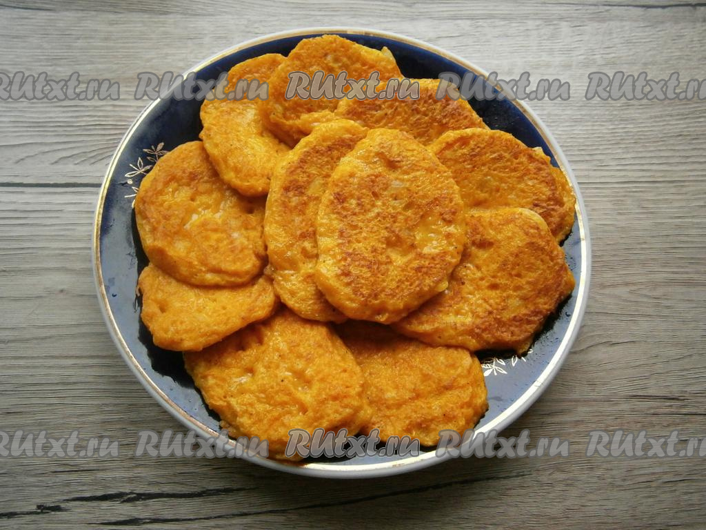 Готовые тыквенные оладушки получаются красивыми, ярко-оранжевого цвета.