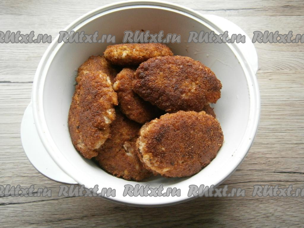 Котлеты сложить в небольшую керамическую кастрюльку и довести их до готовности в микроволновке в течение минут 5 при мощности 750 Ватт или в разогретой духовке в течение 10-15 минут при температуре 180 градусов.