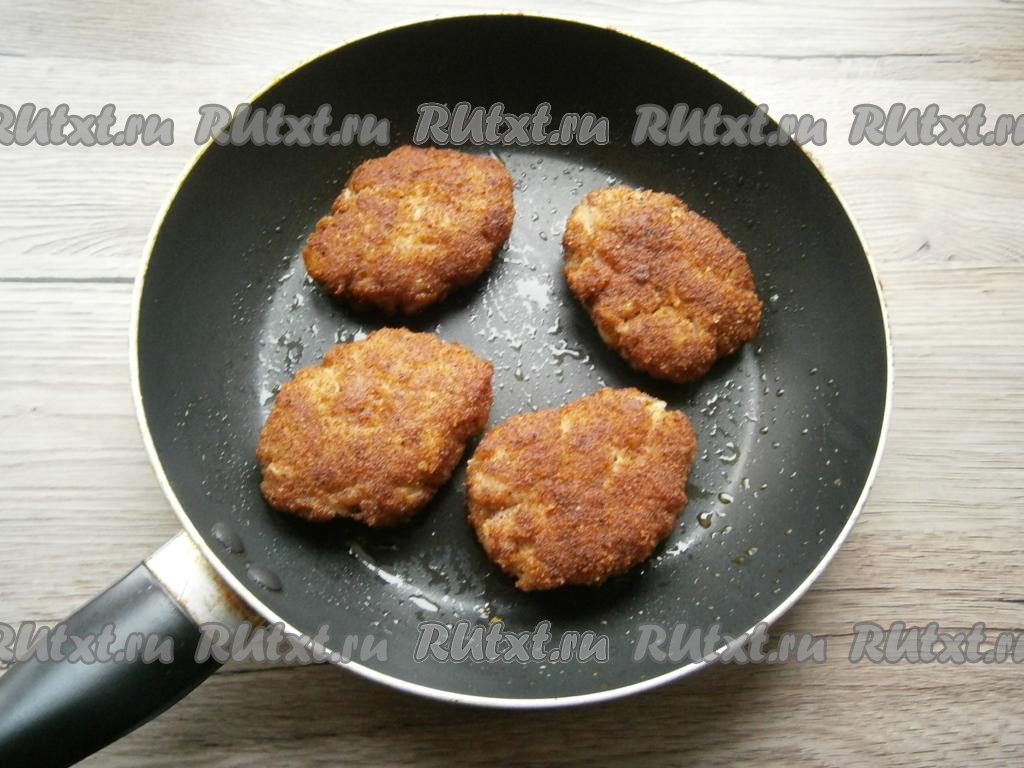 Жарить котлеты из козлятины на разогретом растительном масле на среднем огне до румяного цвета с двух сторон.