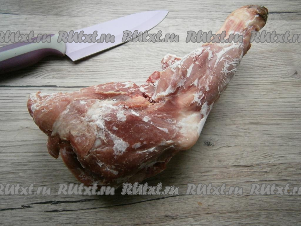Если козлятина заморожена, разморозить. У меня была нога, поэтому я срезала мясо, отделяя его от кости.