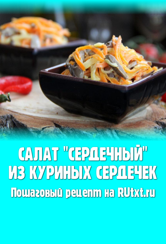 Существует несколько вариантов возникновения названия этого салата, но, скорее всего, название "Сердечный" он носит потому, что его основным ингредиентом являются варёные куриные сердечки. Кроме сердечек в состав этого блюда входят жареная морковь и маринованный лук. Все ингредиенты отлично сочетаются и дополняют друг друга. Салат получается очень вкусным и ярким, его можно приготовить на ужин и даже на праздничный стол.
