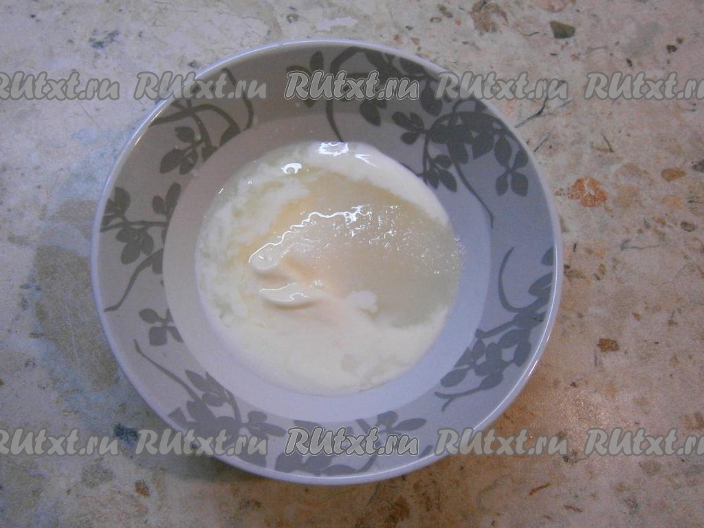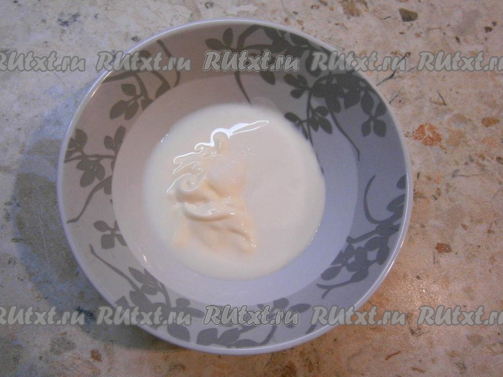 Приготовить заправку: смешать молоко, майонез и кефир.