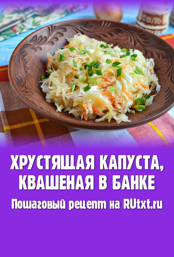 Хочу предложить вам рецепт очень вкусной, хрустящей квашеной капусты, приготовленной в банке. Такая капуста очень полезна для нашего организма, тем более, что квасится она естественным способом - без добавления уксуса или другой кислоты. Готова капуста будет через 2-3 суток, в зависимости от окружающей температуры. Подать такую капусту лучше всего с ароматным нерафинированным подсолнечным маслом и луком. Расчет продуктов дан на 3-х-литровую банку.