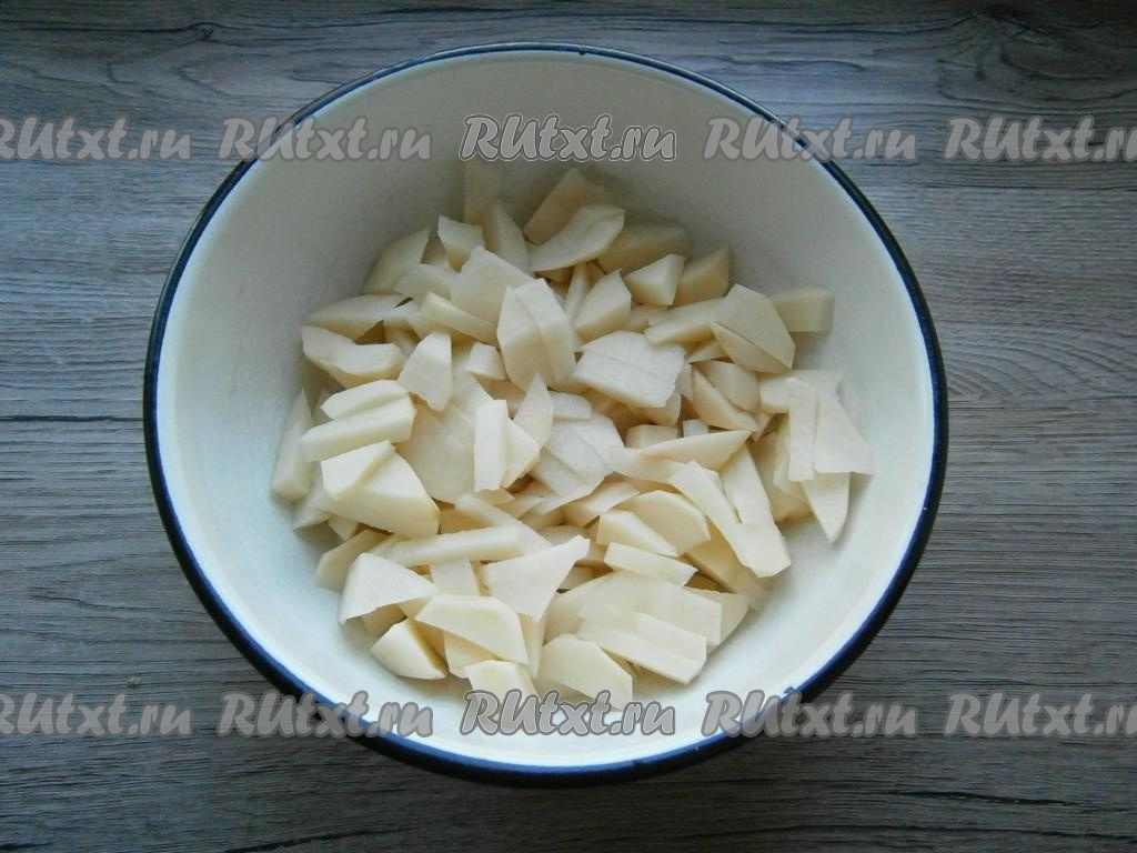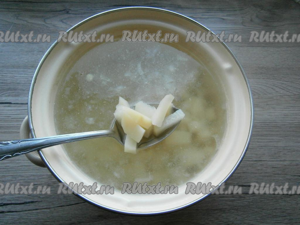 Воду в кастрюле вскипятить, посолить, выложить картофель. Варить его минут 20-25 с момента закипания на небольшом огне.
