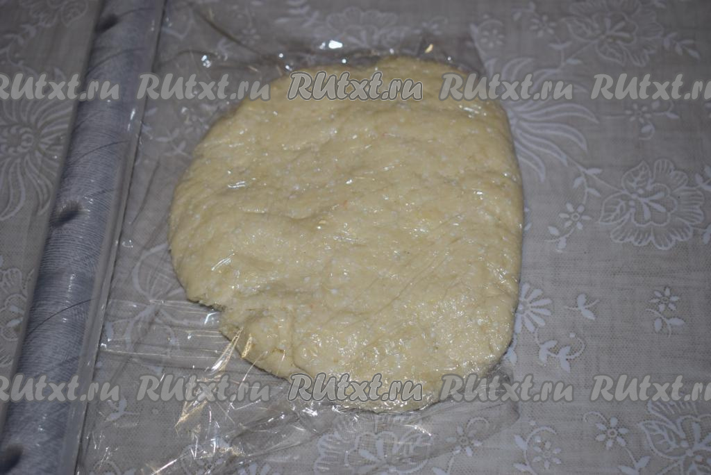 Заворачиваем тесто в пищевую пленку и кладем в холодильник на 30 минут.