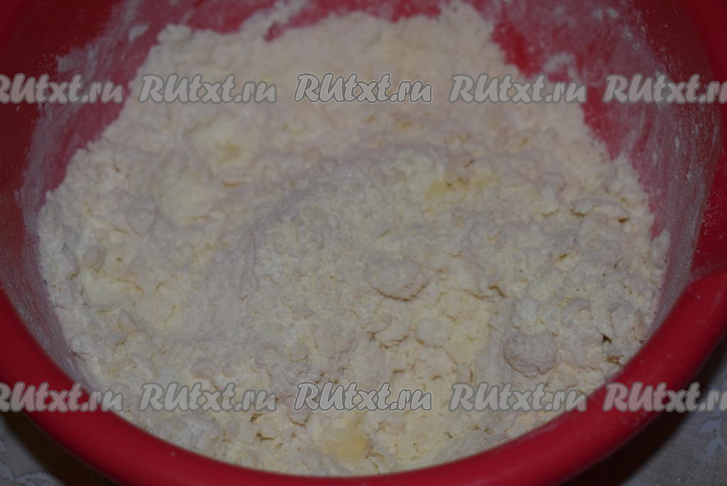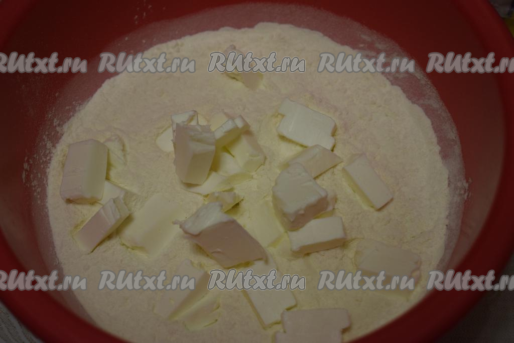 К муке добавляем сливочное охлажденное масло (из холодильника, не из морозилки).