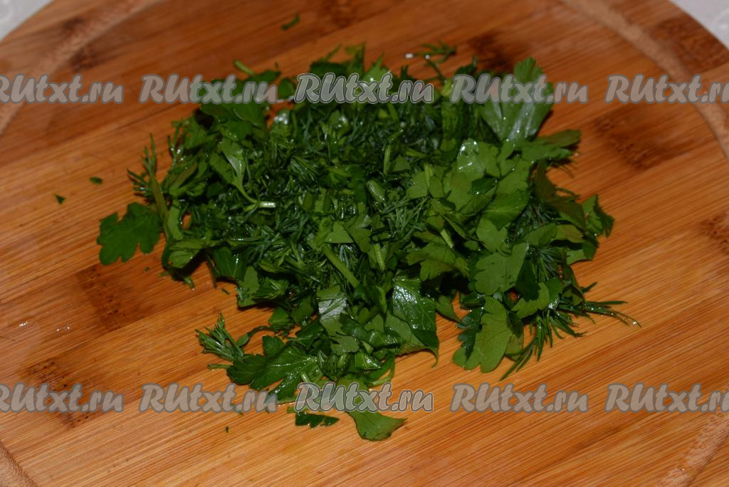 Укроп, петрушку режем мелко.