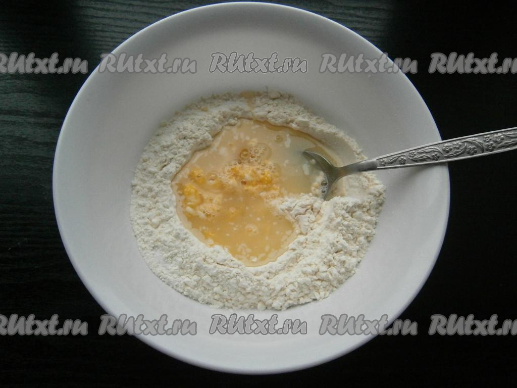 Постепенно вливая теплую сыворотку, замешивать тесто.