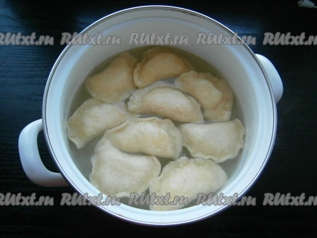 Нужное количество вареников поместить в кипящую воду, чуть подсолить, после закипания уменьшить огонь и варить вареники около 5 минут с момента всплытия.