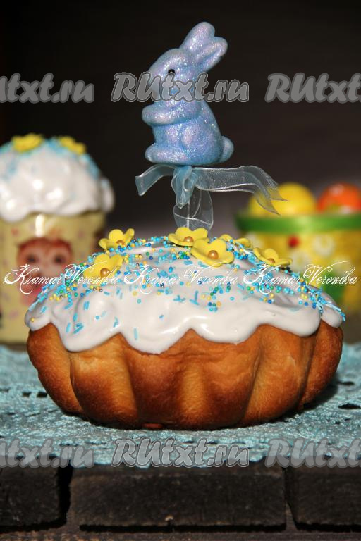 Сразу после нанесения глазури украсить куличи кондитерской посыпкой.