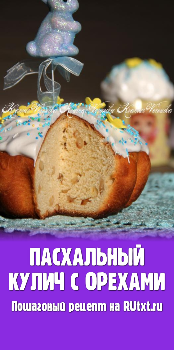 Мне очень нравится выпечка с орехами. Нашла интересный рецепт домашнего пасхального кулича, в состав которого входят орехи. Тесто замешивается на желтках, а из белков формируется глазурь. Куличи получились очень вкусными, нежными, с воздушным мякишем. Орехи для кулича можете взять любые, я взяла арахис, можно даже взять несколько видов орехов, так даже будет интереснее вкус.