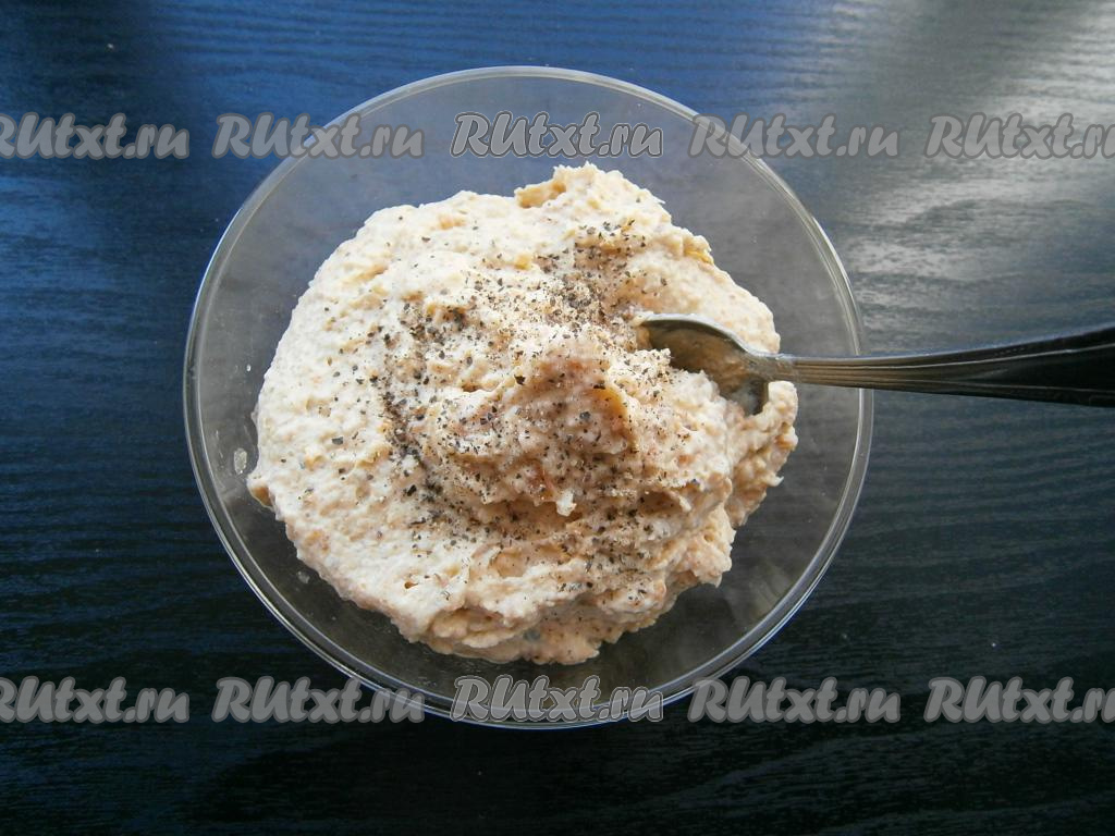 Паштет переложить в миску, поперчить. Мне соли было достаточно от селедки, если вам не хватает - подсолите.