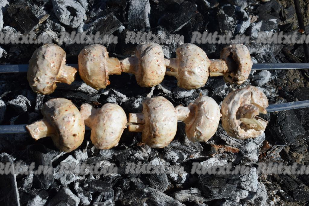 Вкусные, очень сочные, ароматные шампиньоны, приготовленные на открытом воздухе, вряд ли оставят кого-то равнодушным.