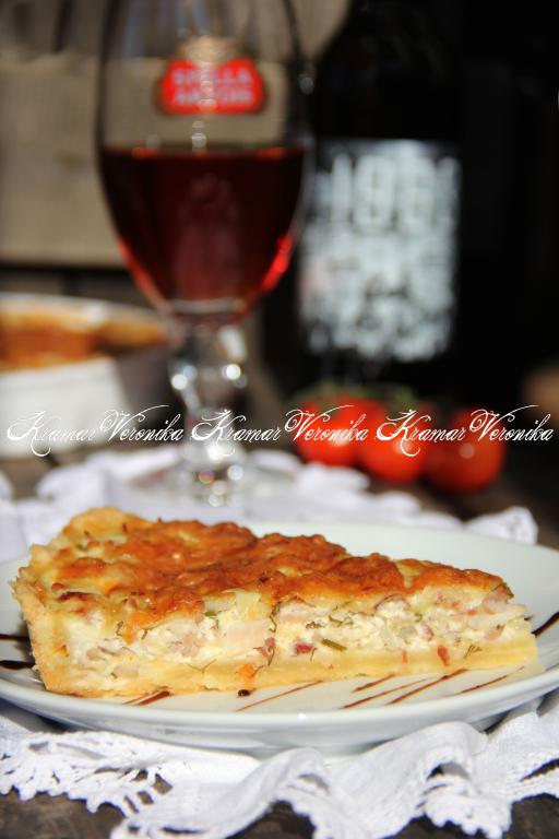 Выпекать пирог с колбасой и сыром в разогретой духовке при температуре 180 градусов, примерно, 1 час. Выпечка должна покрыться красивой золотистой корочкой. Такой пирог можно подать и в горячем, и в холодном виде. Начинка из колбасы и сыра на песочной основе - это очень вкусно и сытно, а молочная заливка делает этот пирог еще и невероятно нежным.