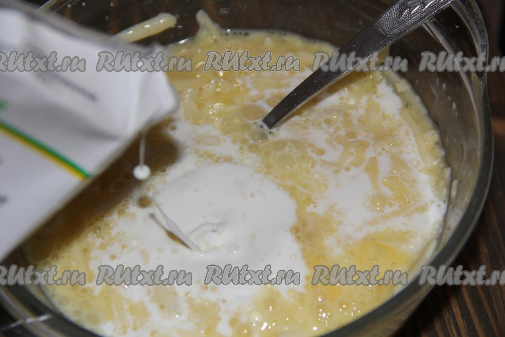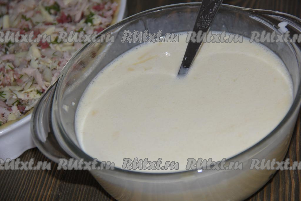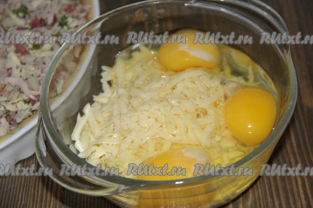 Хорошо перемешать нашу заливку для пирога, посолить и поперчить.