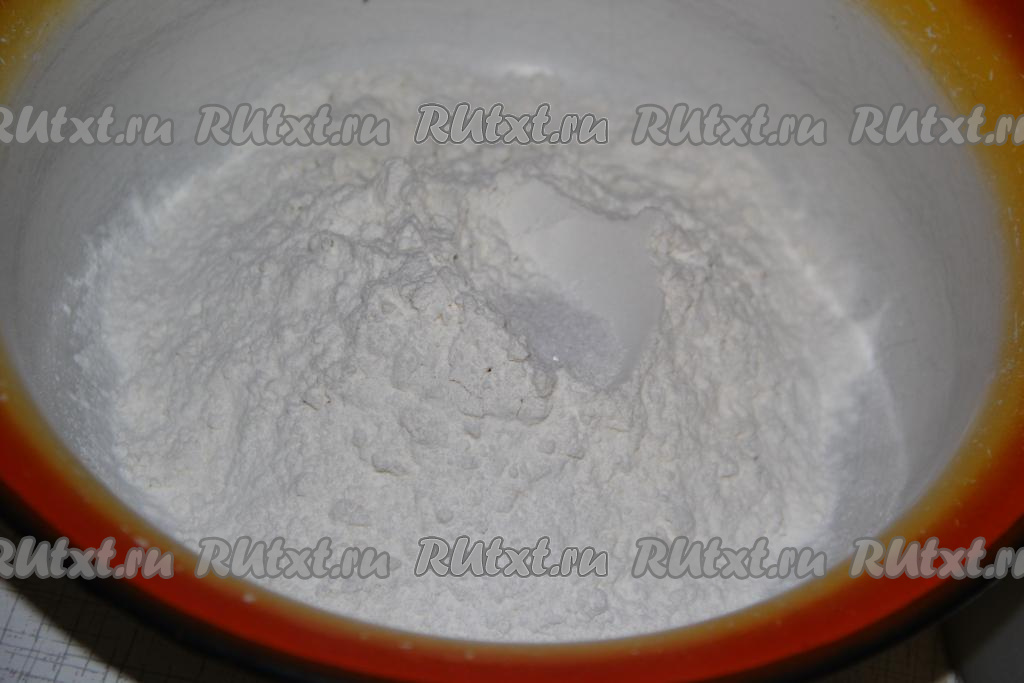 Для приготовления теста просеять в миску муку, всыпать соль.