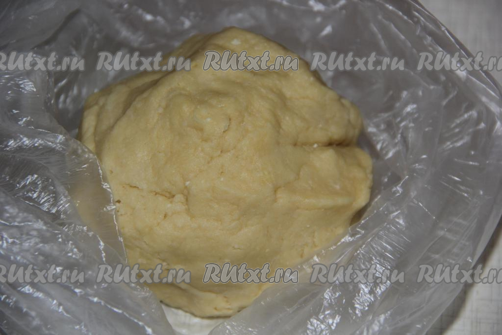 Замесить мягкое и не липнущее к рукам тесто, поместить его в целлофановый пакет и убрать в холодильник минут на 30.