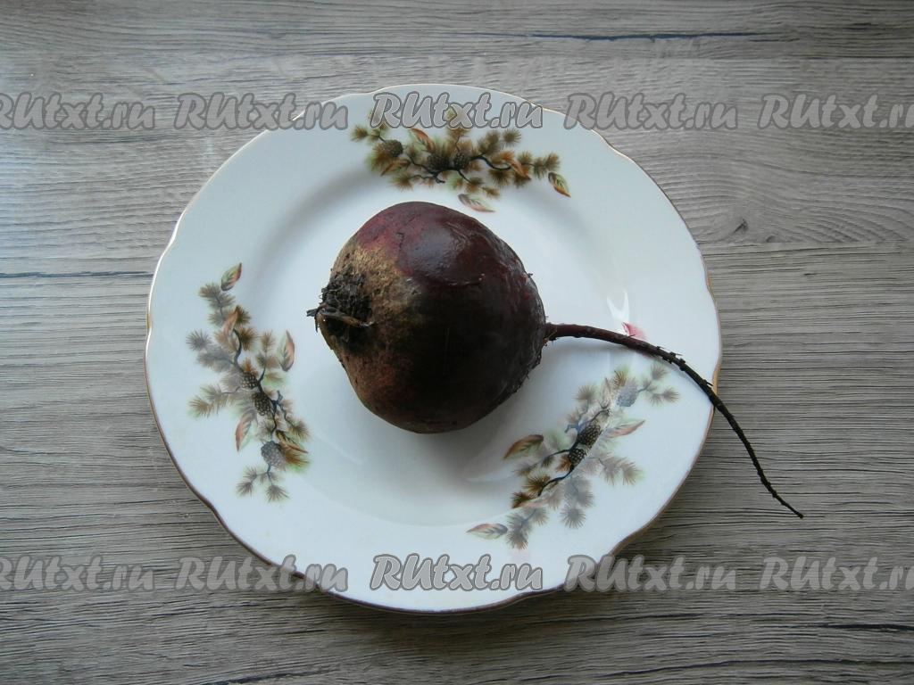 Свеклу в кожуре отварить или запечь в духовке в течение 1 часа, остудить.