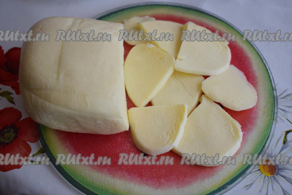 60 грамм сыра нарезаем на пластины, оставшиеся 30 грамм сыра натираем на крупной терке.