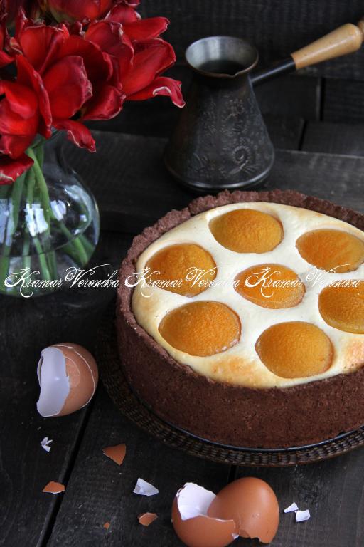 Пирог с творогом и консервированными персиками не только удивит вас своим аппетитным видом, но и порадует прекрасным вкусом. Внешне он чем-то напоминает яичницу. А вот вкус этого пирога просто потрясающий - тонкая шоколадная основа отлично сочетается с нежнейшей творожной начинкой и сочными персиками.