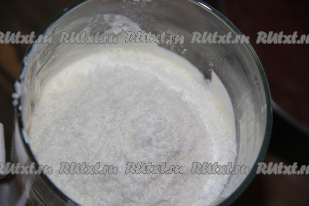 Затем добавить кокосовую стружку и ещё раз перемешать творожную массу, она получится, как сметана средней густоты.