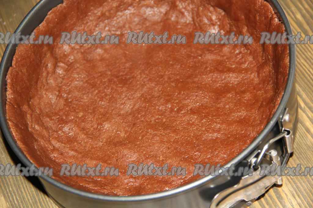 Затем выложить тесто в форму (у меня разъёмная форма диаметром 22 см) и распределить по форме, сформировав высокий бортик.