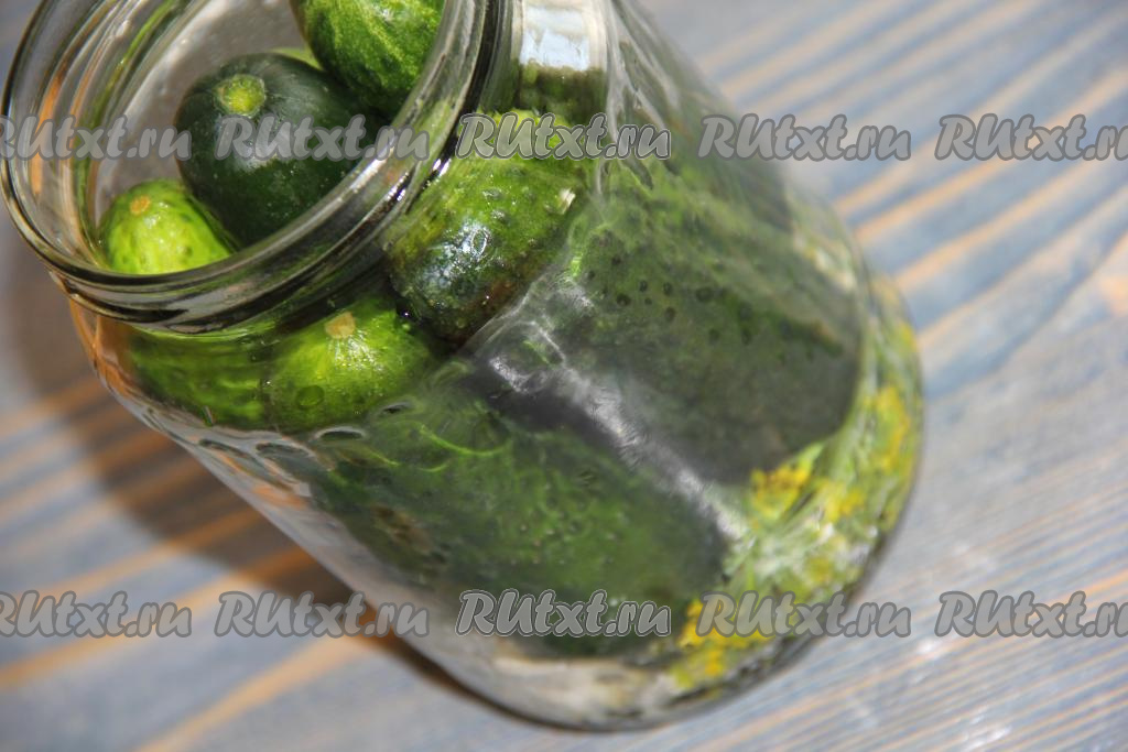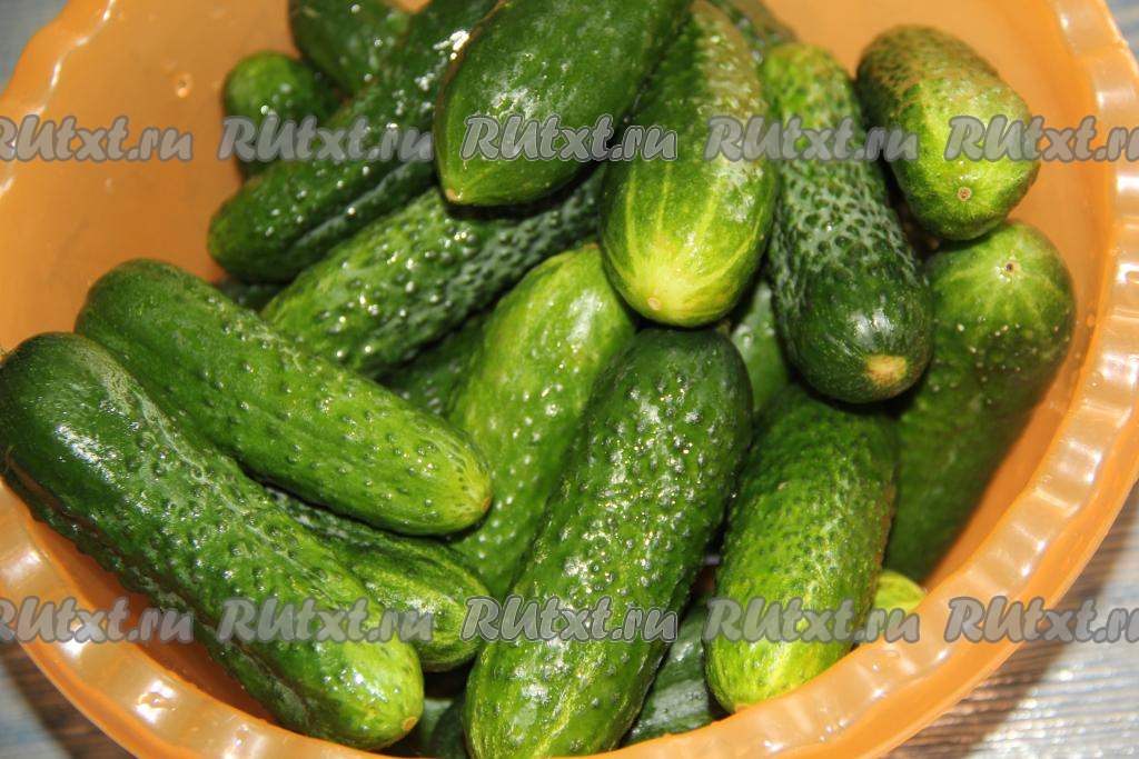 Огурцы залить водой и оставить на 5-6 часов (можно на ночь). Затем огурцы хорошо вымыть.