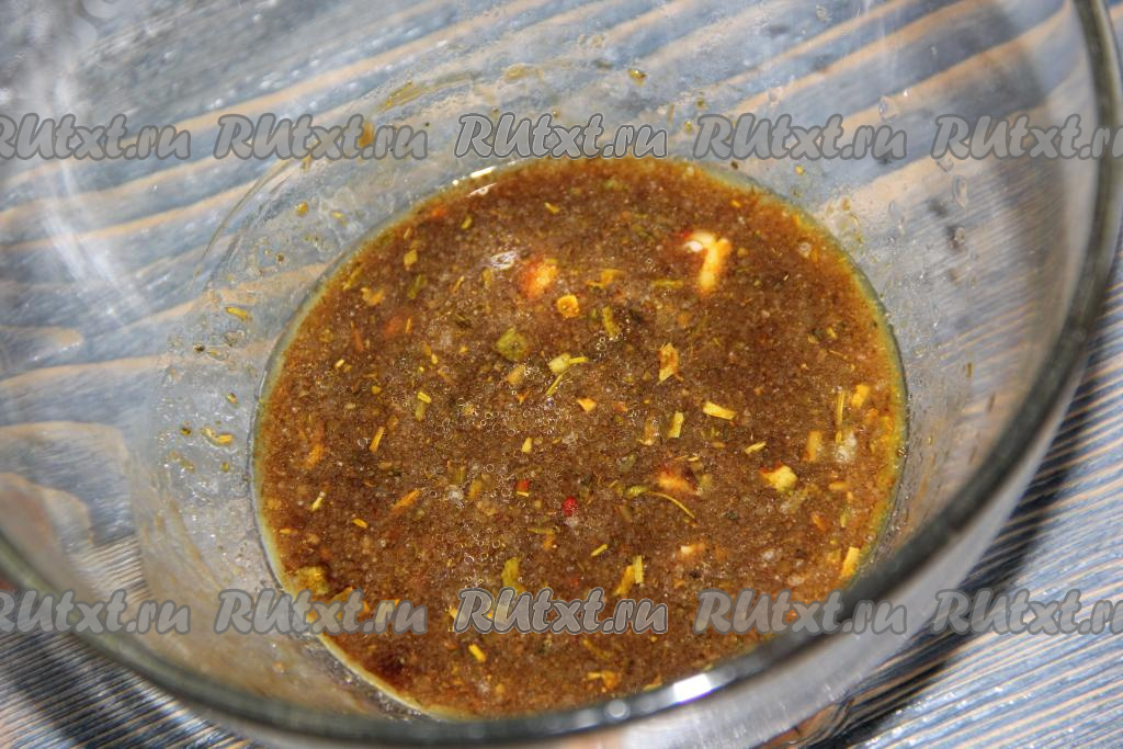 Затем добавить сок лимона и соевый соус, перемешать маринад.