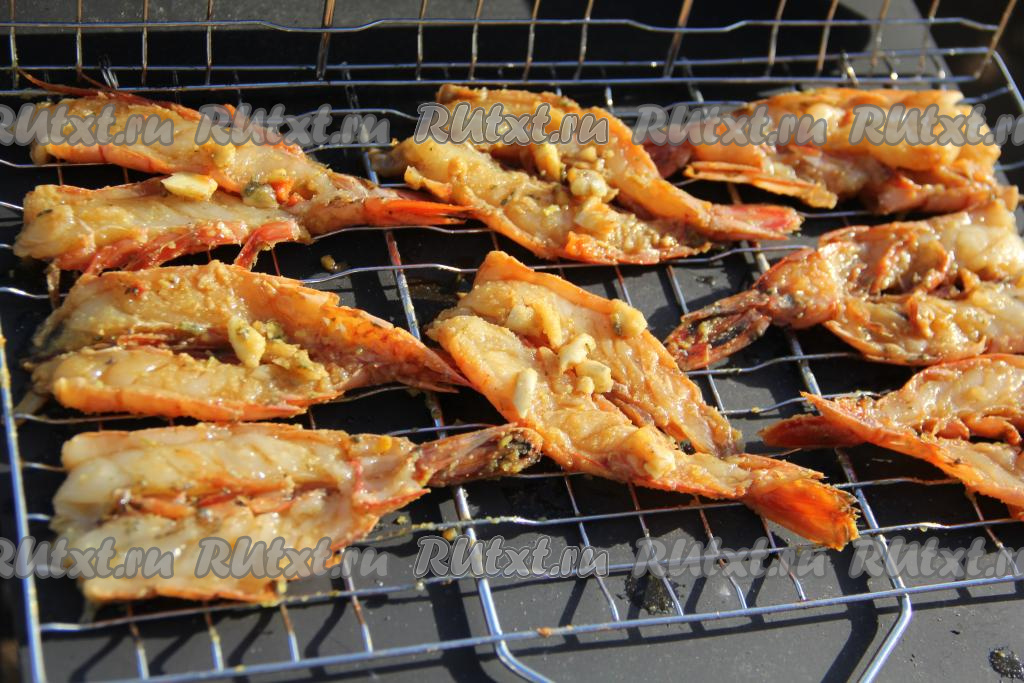 Угли на мангале хорошо раскалить. Выложить лангустины на решётку.