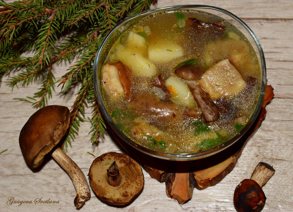 Суп из свежих лесных грибов получается очень красивым, с прозрачным бульоном, насыщенным вкусом и ароматом.