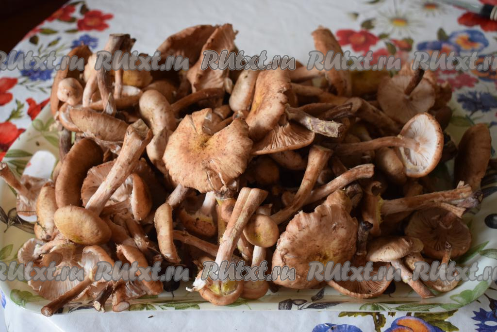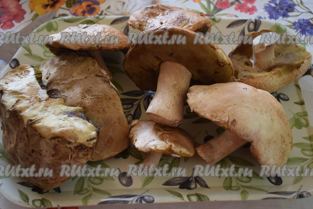 Лесные грибы очищаем от мусора, промываем и даём стечь воде. Нарезаем грибы на, примерно, одинаковые кусочки.