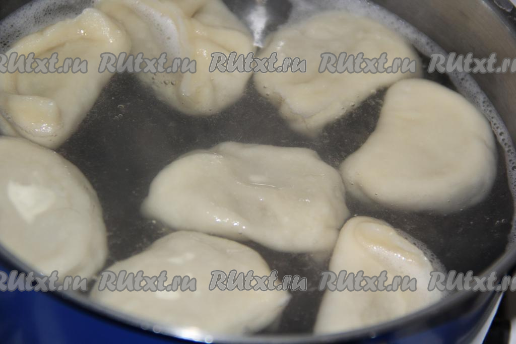 Варить вареники с момента закипания воды 15 минут на среднем огне. Как только вареники поднимутся, значит они готовы.
