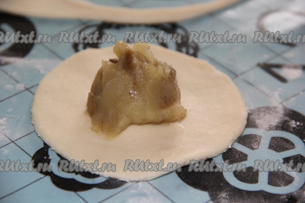 На середину каждого кружочка выложить по 1 столовой ложке начинки.