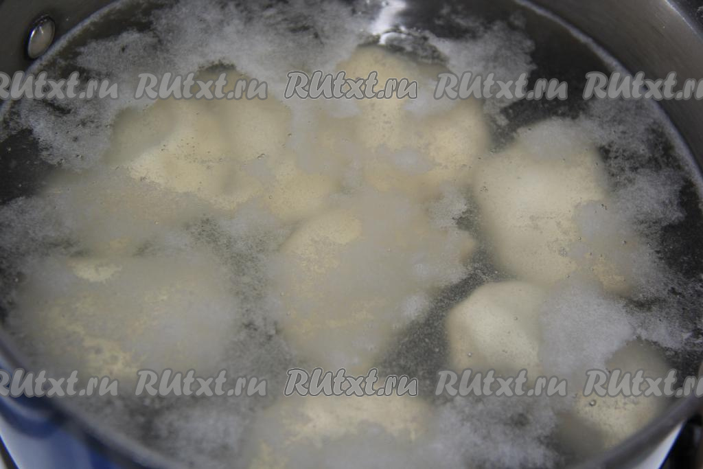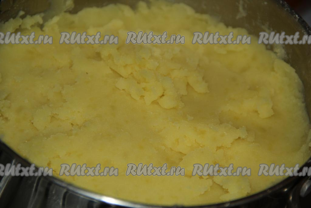 Для приготовления начинки картофель очистить и сварить в подсоленной воде до готовности (в течение 20-25 минут). Размять картофель в пюре (пюре не должно быть жидким).