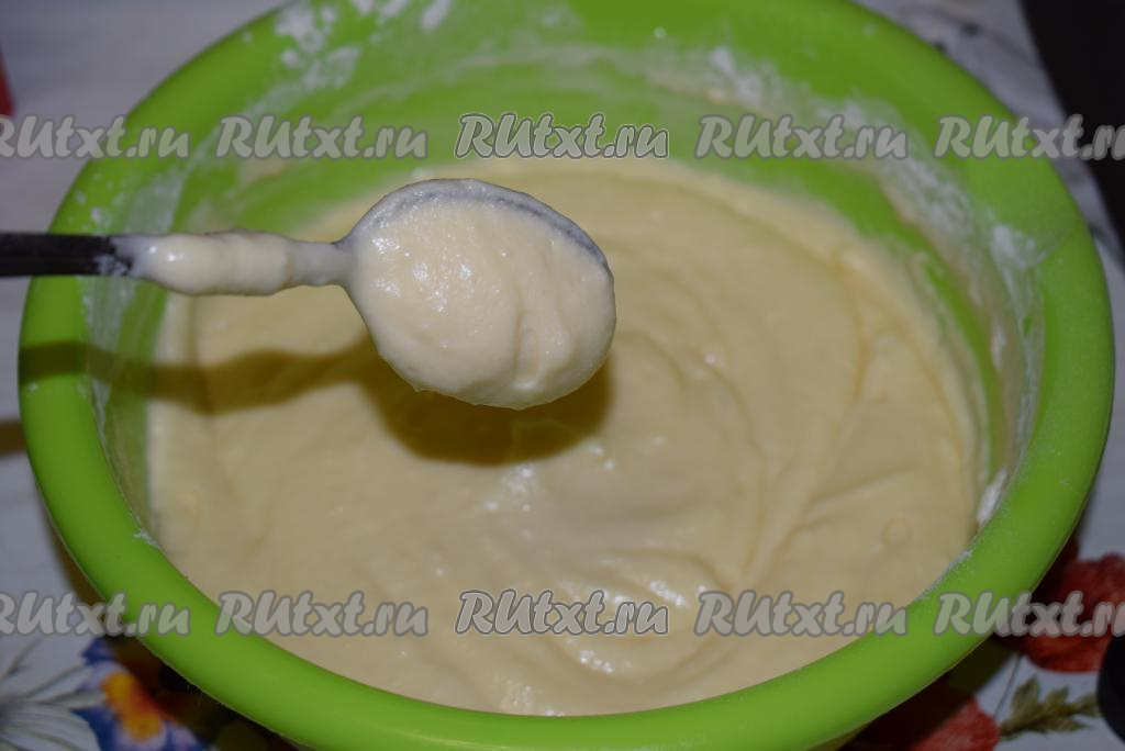 Тесто для приготовления творожного кекса будет похоже по консистенции на домашнюю сметану, оно получится средней густоты.