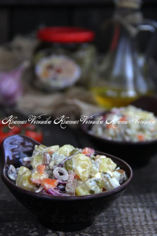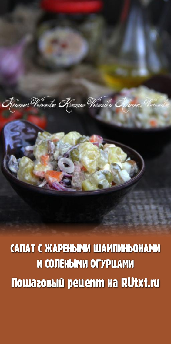 Рецепт салата с жареными шампиньонами, картофелем и солеными огурцами я взяла в кулинарном журнале. Приготовила и осталась довольна результатом. Для этого блюда нам понадобятся очень простые продукты, которые в этом салате отлично сочетаются и дополняют друг друга, создавая гармоничный вкус. Этот сытный и вкусный салат можно подать не только к повседневному, но и к праздничному столу, попробуйте!